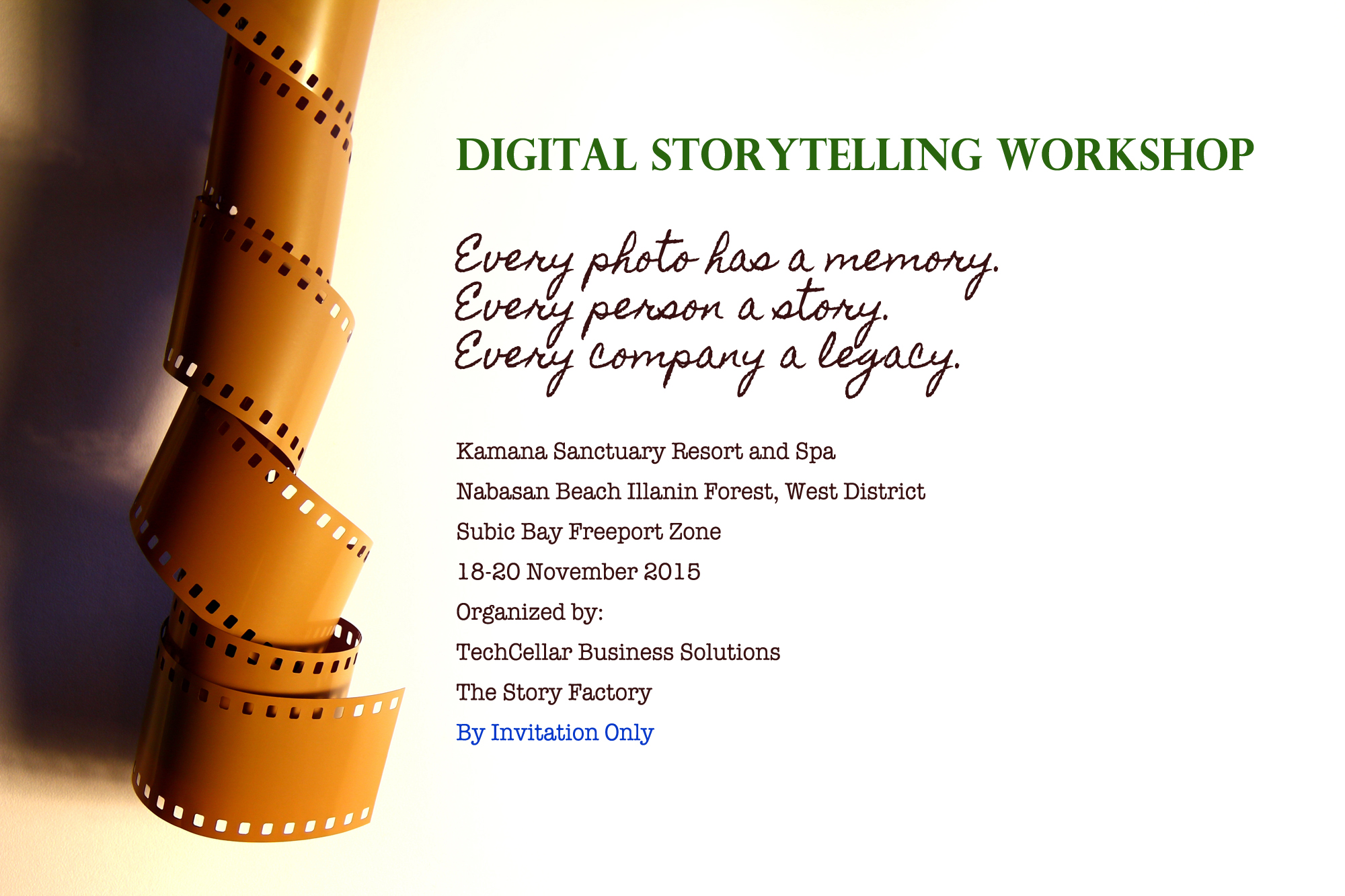 The Story Factory will facilitate a Digital Storytelling Workshop in Kamana Sanctuary Resort and Spa (Subic, Philippines) together with TechCellar Business Solutions, 18-20 November 2015.